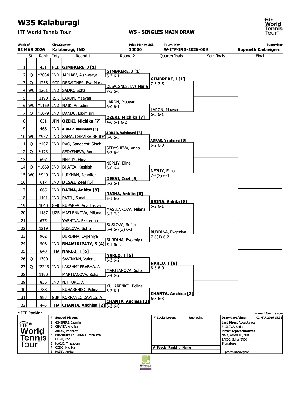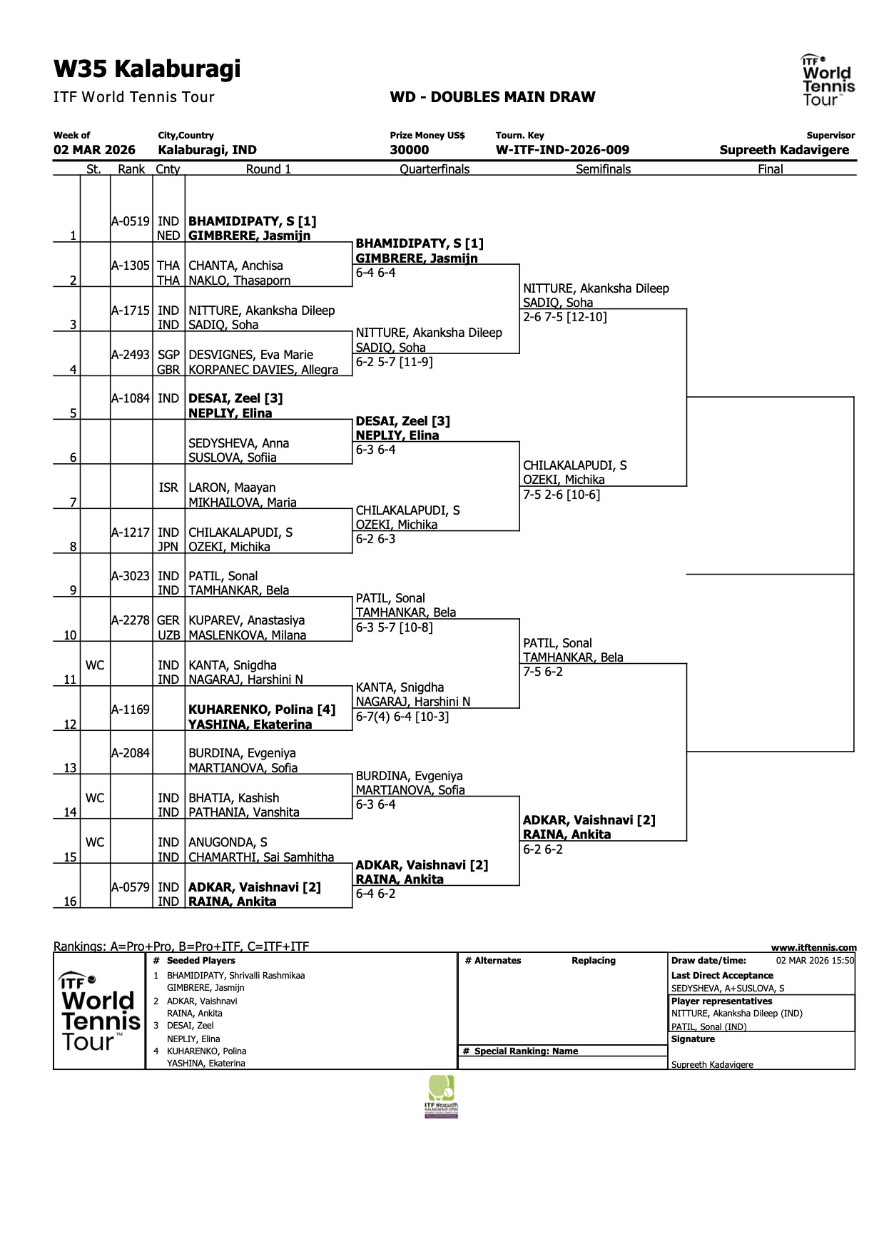 Four Indians Awarded Main Draw Wildcards At Kalaburagi Open W35